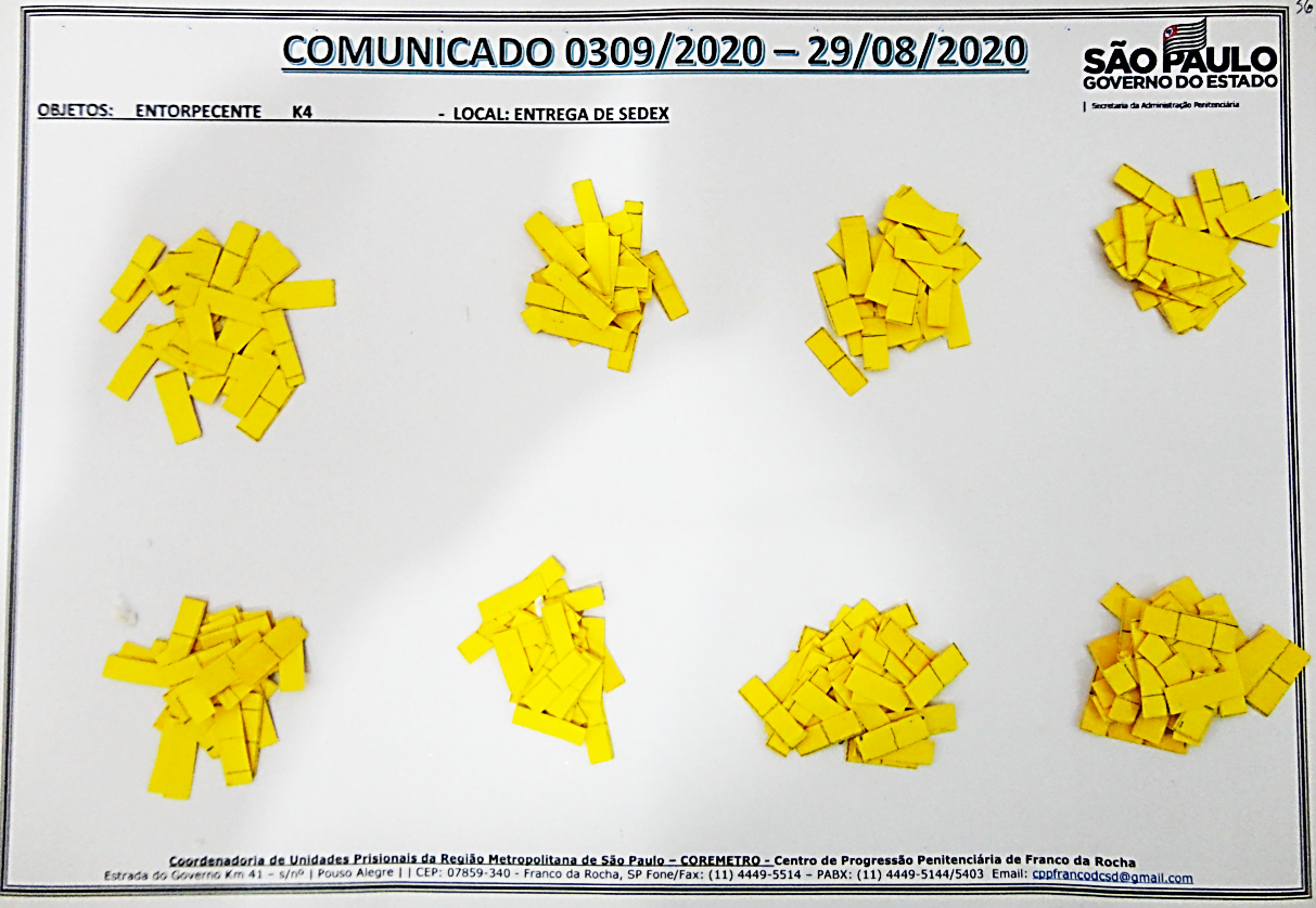 O material, enviado via correio pelo irmão do detento, continha 240 micro pontos semelhantes à droga sintética K4.