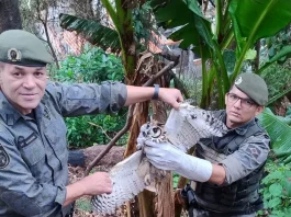 GCM resgata coruja-orelhuda presa em linha de pipa no Sítio dos Morros