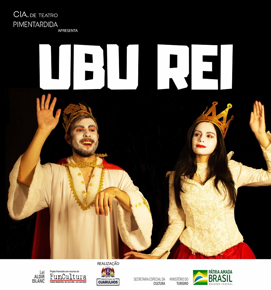 A Companhia de Teatro PimentArdida apresenta Ubu Rei, uma releitura do clássico das artes cênicas escrita em 1896 pelo dramaturgo francês Alfred Jarry. A exibição acontece nos dias 2 e 9 de maio em dois horários, às 18h e às 20h, pelo canal do coletivo no YouTube, no endereço https://www.youtube.com/channel/UCtul5CpldJ8ib4hcv2RTV-g. A classificação do espetáculo é 12 anos.