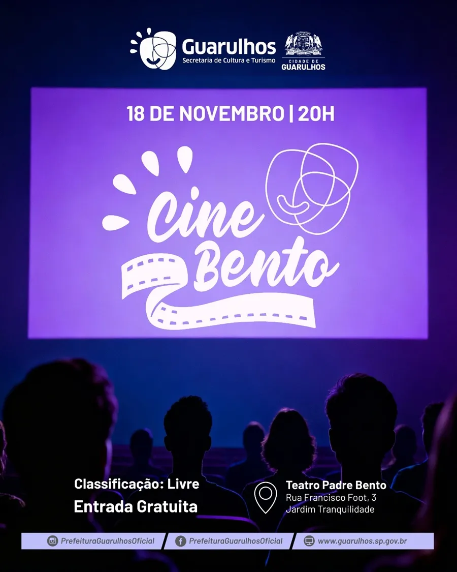 Idealizado pela Secretaria de Cultura e Turismo de Guarulhos, o Cine Bento estimula o resgate do espaço do teatro como sala de exibição cinematográfica, dando palco às criações audiovisuais de cineastas locais. As sessões trabalham a valorização e a visibilidade dos artistas de Guarulhos que encontram no projeto a oportunidade de ampliar as narrativas das histórias encontradas nos bairros e transmitidas pelas lentes de quem vive a cidade.