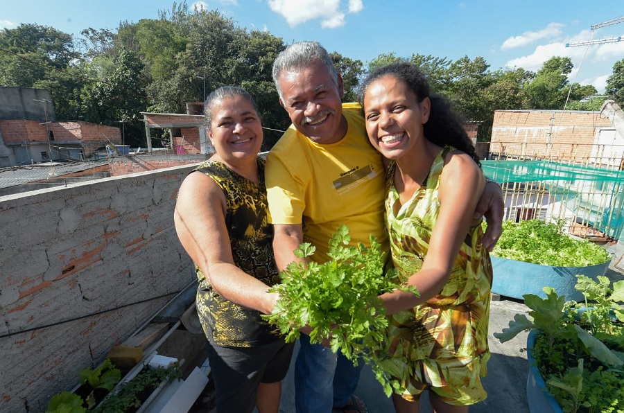Recentemente a composteira da família ganhou um reforço com a adesão da irmã de Ivo, a nutricionista Zerbênia Bispo da Costa, que há cerca de dois meses começou a incluir folhas de frutas e de legumes no processo de compostagem. “Descobri que é possível transformar cascas de alimentos em adubo de alta qualidade de um modo muito simples e praticamente sem nenhum custo, nos cursos online sobre compostagem oferecidos pelo Programa Lixo Zero da Prefeitura. Desde então tenho trazido esses resíduos da minha casa para a composteira do meu irmão e também estou plantando a sementinha da sustentabilidade junto a várias pessoas”, diz Zerbênia, que conta com a ajuda de suas três filhas, Huara, Samira e Kiara, de 16, 12 e dez anos, respectivamente, na separação dos resíduos.