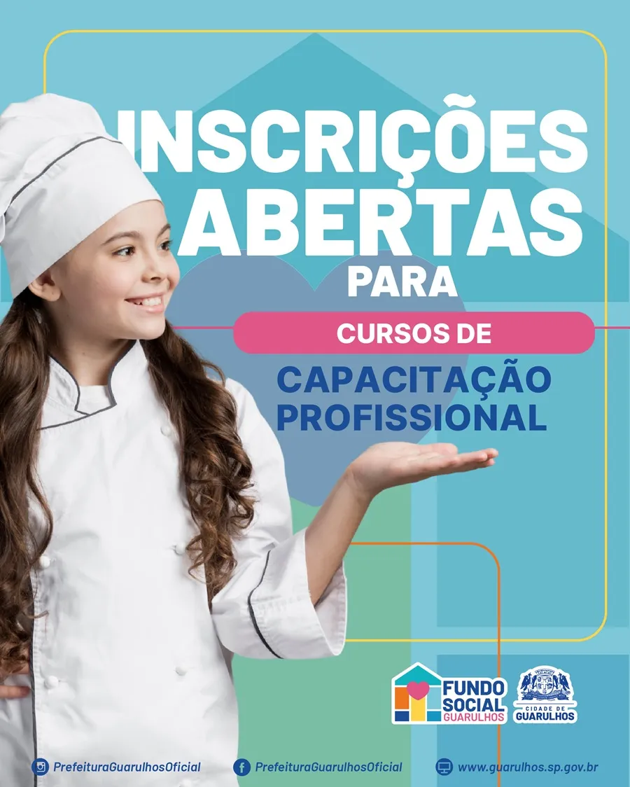 O Fundo Social de Solidariedade de Guarulhos abriu nesta segunda-feira (23) as inscrições para cursos de capacitação profissional e inclusão produtiva. Serão oferecidas mais de 1.400 vagas distribuídas em 16 cursos nas áreas de beleza, moda e gastronomia, com 50 turmas no total.
