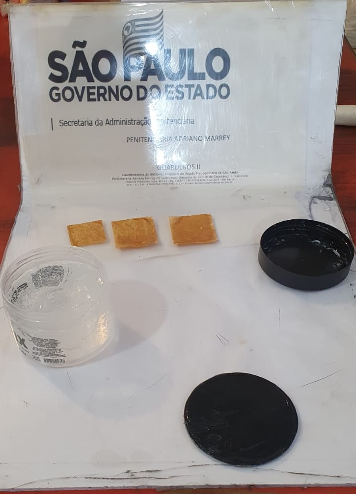 A Penitenciária II “Desembargador Adriano Marrey” de Guarulhos registrou uma apreensão hoje, terça-feira (28). Os servidores localizaram um fundo falso em um pote de gel para cabelo durante a inspeção de itens enviados por correspondência a um sentenciado da unidade. Nesse compartimento foram localizadas três tiras de papel, suspostamente droga sintética K4. O remetente da encomenda era a mãe do recluso.
