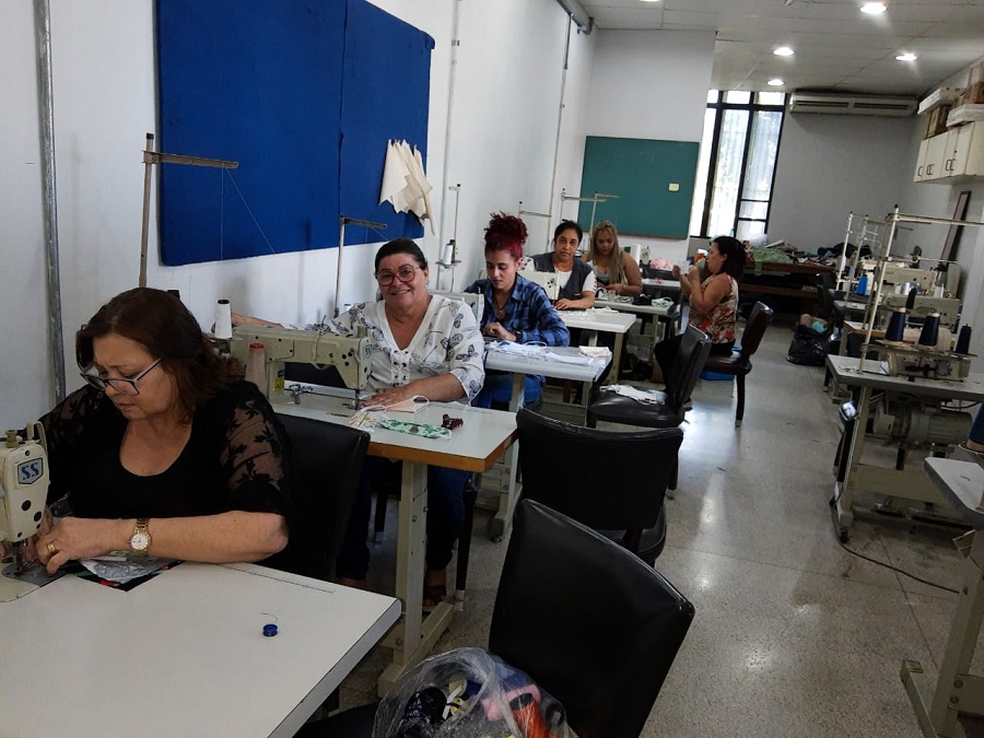 As máscaras foram confeccionadas por funcionárias e também voluntárias na sala de aula do curso de corte e costura do programa de Capacitação Profissional e Geração de Renda da Secretaria de Desenvolvimento e Assistência Social.