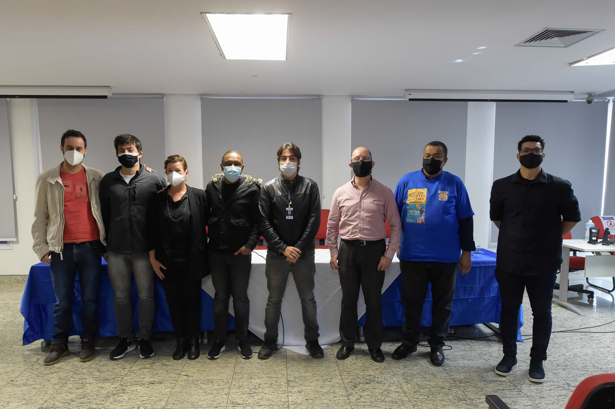 A Secretaria de Cultura de Guarulhos lançou a nova fase do Programa Escola Viva de Artes Cênicas, iniciativa marcada pela multidisciplinaridade e que conta com profissionais das áreas de dança, teatro e circo. O prefeito Guti, o vice-prefeito e secretário de Cultura, Professor Jesus, e o diretor do Conservatório de Guarulhos, Emiliano Patarra, participaram do evento de lançamento, que aconteceu na manhã desta segunda-feira (19) na sede da Secretaria de Educação com a presença de jornalistas e dos profissionais selecionados para atuação no programa.