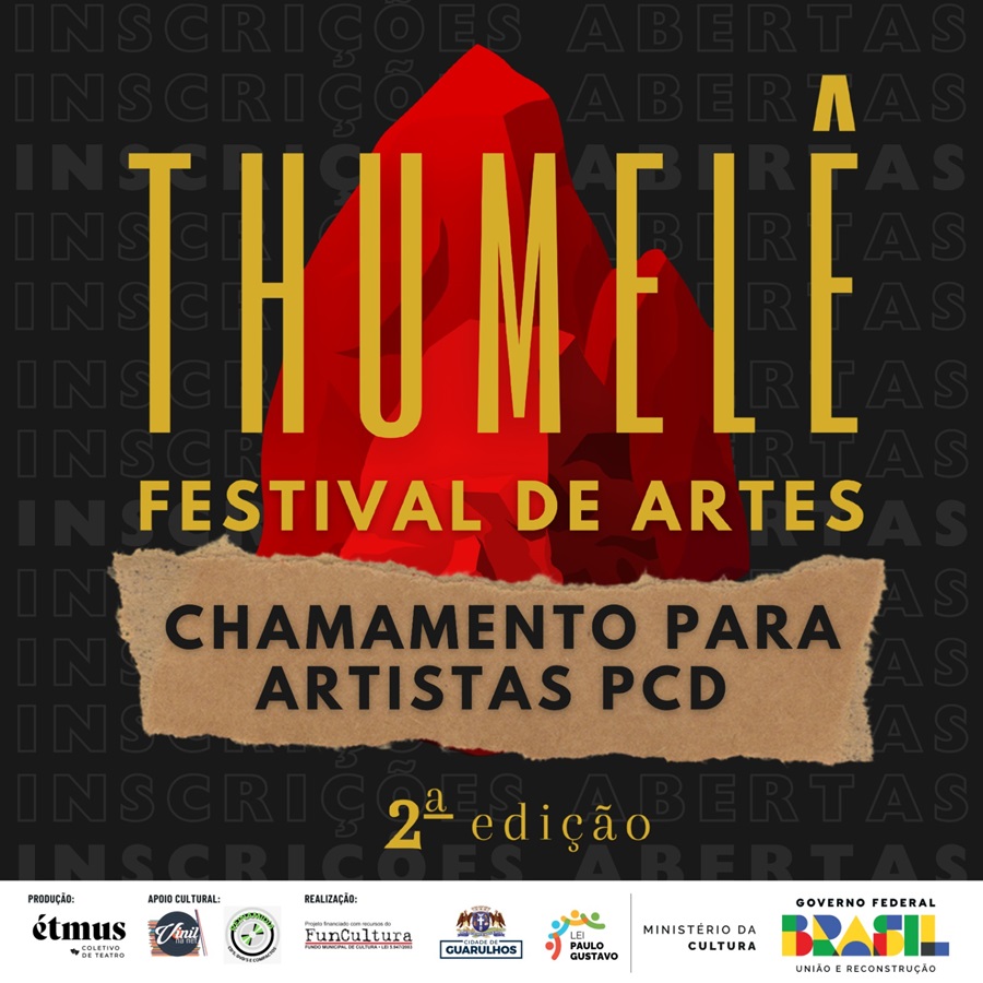 O Thumelê Festival de Artes recebe inscrições de pessoas com deficiência para integrar o quadro de artistas em sua segunda edição. Por meio do link https://bit.ly/3PsvFcU e até o dia 31 de março poderão se inscrever artistas de todas as manifestações culturais, tais como músicas autorais ou não, performances, danças, cenas inéditas ou já apresentadas, recortes de espetáculos já estreados, monólogos, cenas curtas, poemas, poesias, exibições fotográficas, exibições de filmes, entre outras.